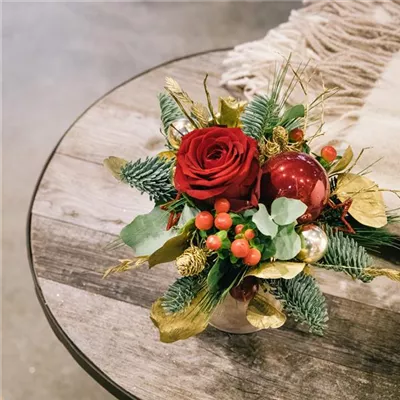 Liebevoll gestecktes Herz mit kleinen verzweigten Rosen. Die Abbildung zeigt die Variante für 54,95€.