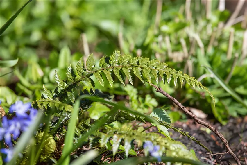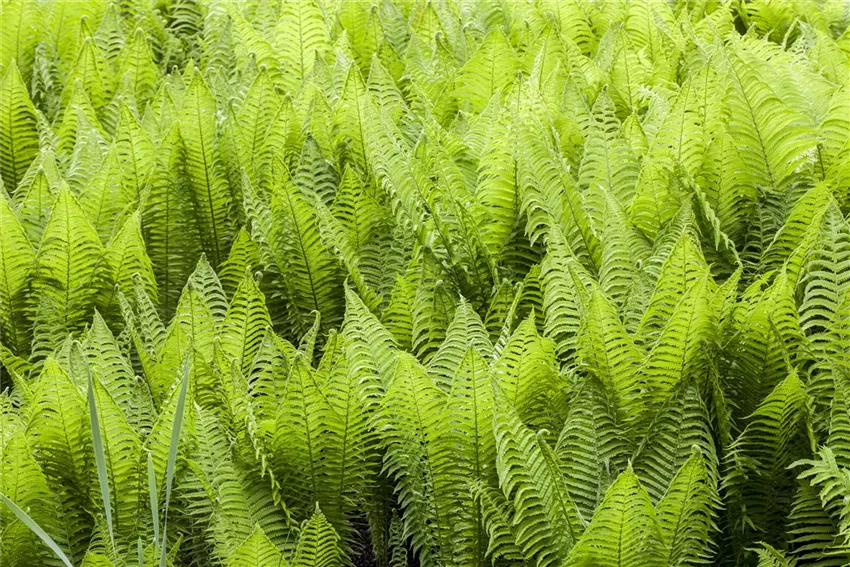 Farne sind ganz besondere Pflanzen im Garten – so viel steht fest. Sie gehören sogar zu den ältesten Pflanzen auf unserem Planeten. Schon vor mehr als 400 Millionen Jahren wuchsen sie in Wäldern und sind noch heute in unserer Braunkohle zu finden. Sie gehören zu den ersten Pflanzenarten und haben bis heute überdauert. Wer also einen langjährigen und treuen Mitbewohner im Garten sucht, der ist hier genau richtig. Die unterirdischen Rhizome sind sehr ausdauernd und können mehrere Jahre problemlos überleben. Vor allem im Frühjahr sind die Pflanzen sehr faszinierend. Denn dann zeigt sich der neue Austrieb. Dieser wird schon im Herbst gebildet und bleibt bis zum Frühjahr aufgerollt. Damit sind sie vor dem Winter geschützt und können sich im Frühjahr unbeschadet ausrollen. Das Aussehen der aufgerollten Wedel erinnert ein bisschen an Bischofsstäbe oder Geigenköpfe. So oder so sind Farne im Garten etwas ganz Besonderes. Mit ihrer satten Farbe leuchten sie im lichten Schatten umso mehr und begrünen damit Stellen, die andere Pflanzen eher meiden würden.