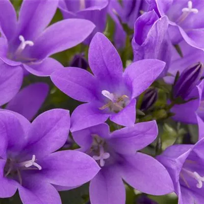 Die Blüten der Glockenblume blühen weiß oder in allen erdenklichen Blau- und Violetttönen. Und dabei machen die Blüten dem Namen der Pflanze alle Ehre. Die Glockenblume besitzt je nach Art glocken-, röhren- oder sternförmige Blüten. Die Blütezeit der Glockenblume liegt zwischen Juni und September. Das macht sie zu einer Pflanze mit einem unschätzbaren Wert für den Garten. Ihren Blüten verdankt die Glockenblume auch ihren botanischen Namen, Campanula. Das bedeutet aus dem Lateinischen übersetzt so viel wie „Glöckchen“. Eine weitere Besonderheit: auch die Anordnung der Blüten ist von Art zu Art unterschiedlich. Mal sind die Blüten als Rispen oder Trauben angeordnet, oft aber auch einzeln.
