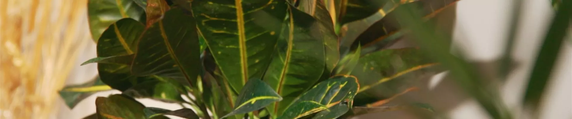 Große Blätter im dunklen Grün mit interessantem Muster in Orange: Der Wunderstrauch ist aus guten Gründen eine beliebte Zimmerpflanze fürs gemütliche Heim.